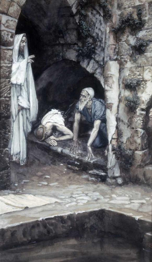 Man With An Infirmity of 38 Years White Modern Wood Framed Art Print with Double Matting by Tissot, James Jacques