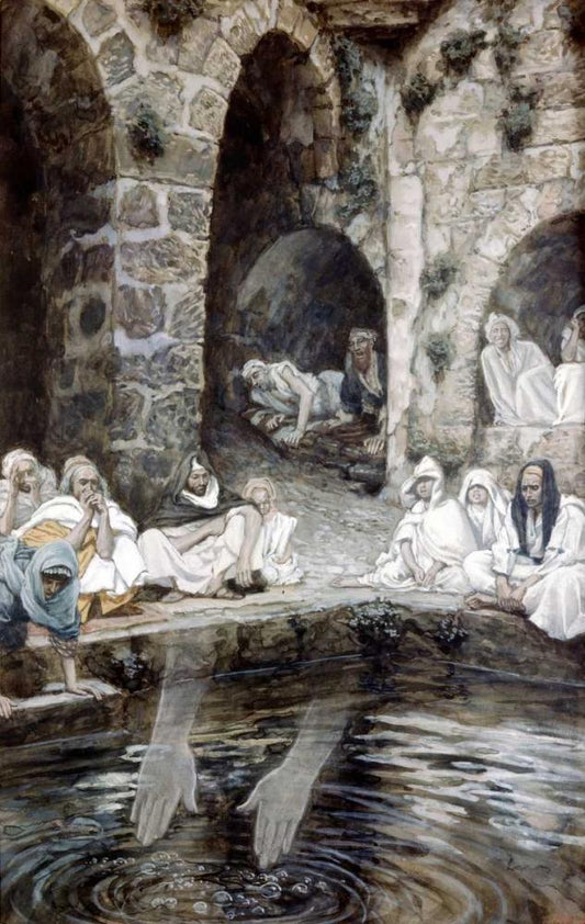 Pool of Bethesda White Modern Wood Framed Art Print with Double Matting by Tissot, James Jacques