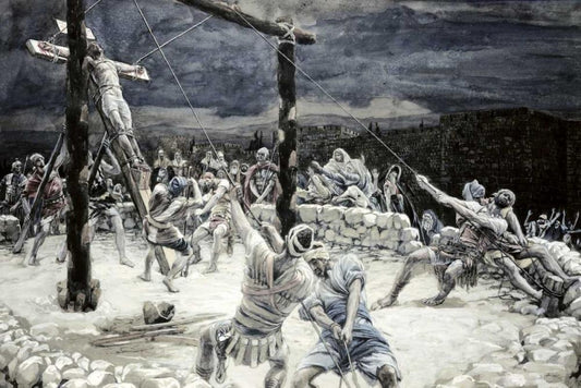 Raising of The Cross White Modern Wood Framed Art Print with Double Matting by Tissot, James Jacques