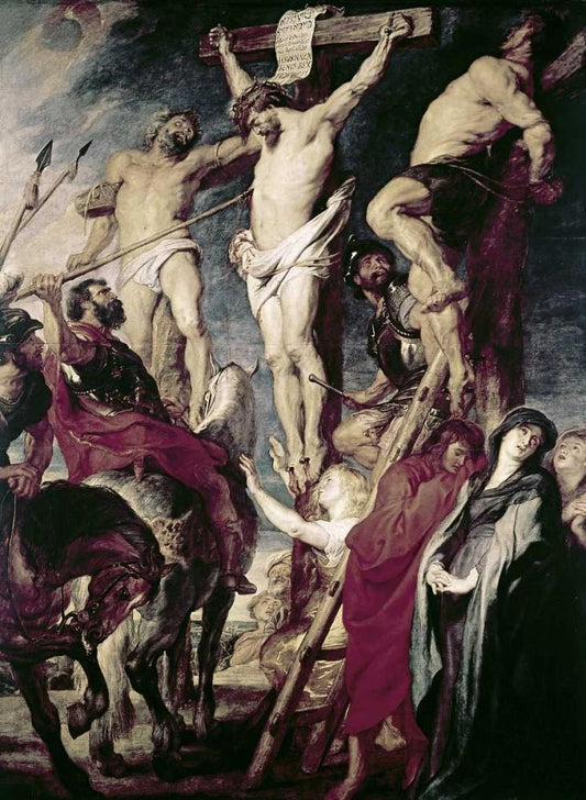 Christ On The Cross Between The Two Thieves White Modern Wood Framed Art Print with Double Matting by Rubens, Peter Paul