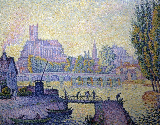 Bridge at Auxerre Le Pont Due Auxerre White Modern Wood Framed Art Print with Double Matting by Signac, Paul