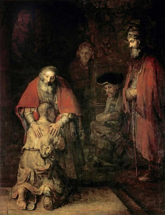 Return of The Prodigal Son White Modern Wood Framed Art Print with Double Matting by Van Rijn, Rembrandt