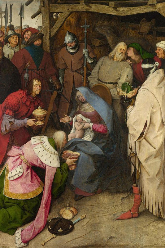 The Adoration of the Kings White Modern Wood Framed Art Print with Double Matting by Bruegel the Elder, Pieter