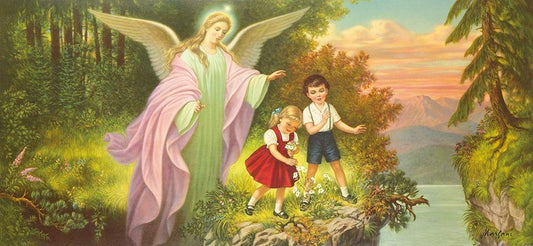 GUARDIAN ANGEL White Modern Wood Framed Art Print with Double Matting by Lindberg