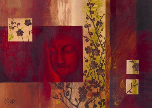 Buddha II White Modern Wood Framed Art Print with Double Matting by Verbeek-Van Den Broek