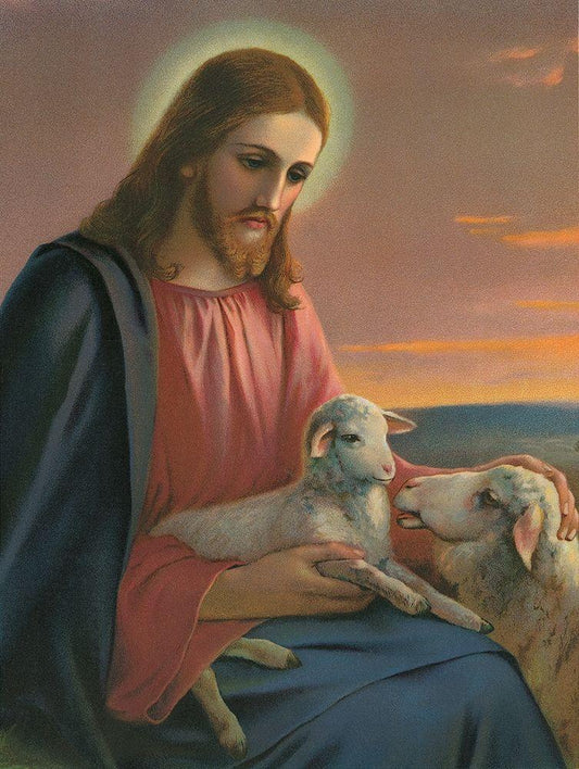 DER GUTE HIRTE White Modern Wood Framed Art Print with Double Matting by Anonymous