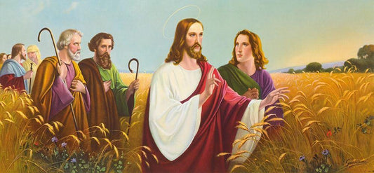 CHRISTUS IM ÄHRENFELD White Modern Wood Framed Art Print with Double Matting by Giovanni