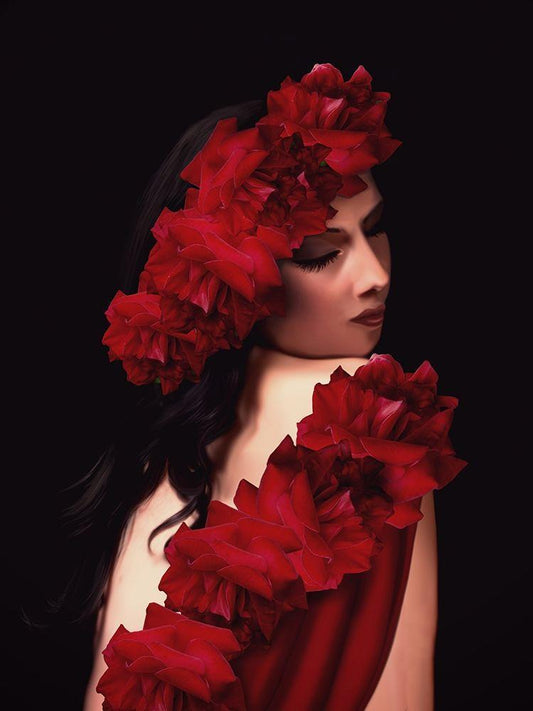 Spanish Rose White Modern Wood Framed Art Print with Double Matting by Babette