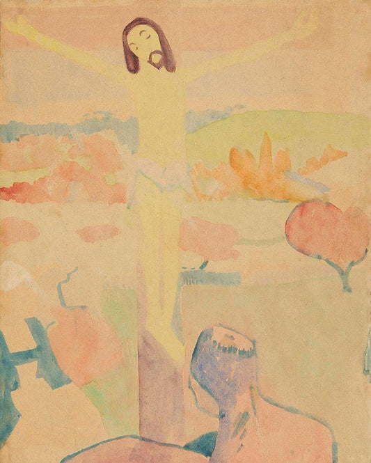 The Yellow Christ White Modern Wood Framed Art Print with Double Matting by Gauguin, Paul