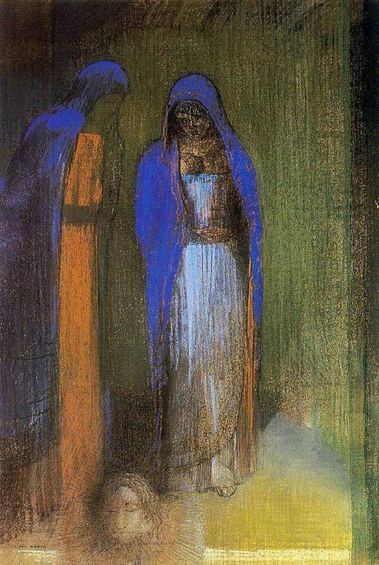 Saint John (The blue tunic) White Modern Wood Framed Art Print with Double Matting by Redon, Odilon