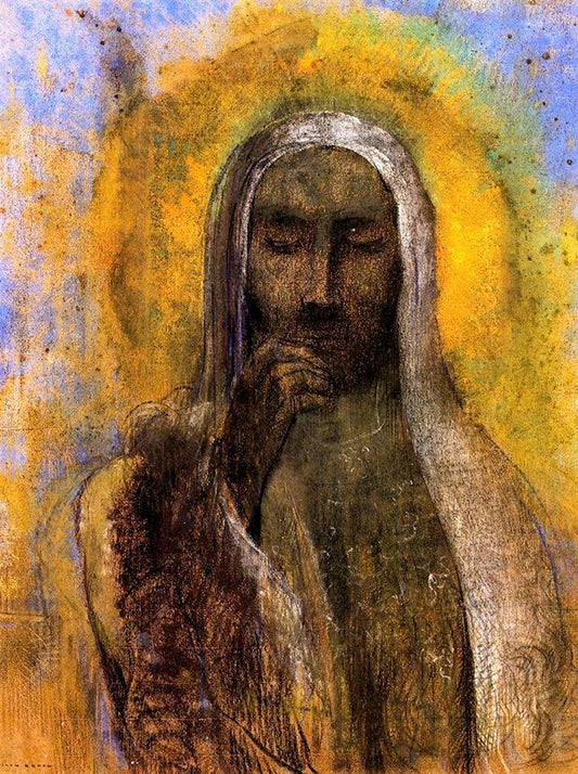 Christ in Silence White Modern Wood Framed Art Print with Double Matting by Redon, Odilon