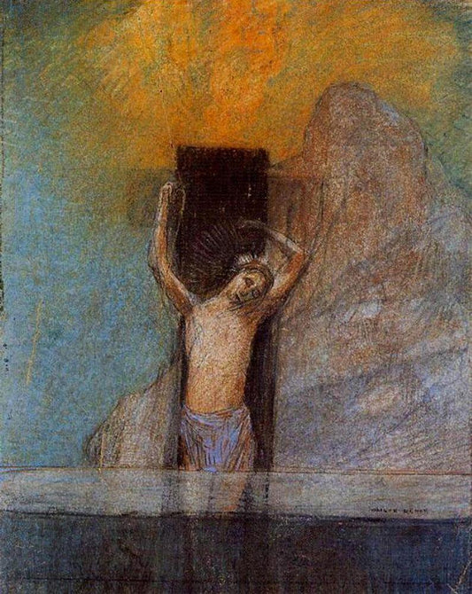 Christ on the Cross White Modern Wood Framed Art Print with Double Matting by Redon, Odilon