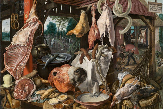 A Meat Stall with the Holy Family Giving Alms White Modern Wood Framed Art Print with Double Matting by Aertsen, Pieter