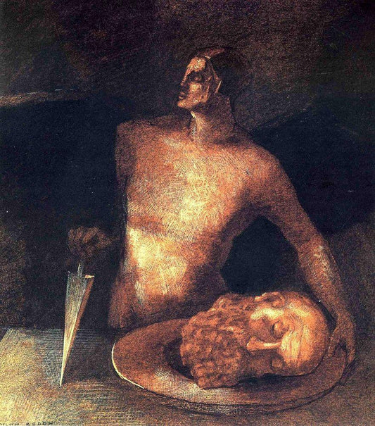 Salome White Modern Wood Framed Art Print with Double Matting by Redon, Odilon
