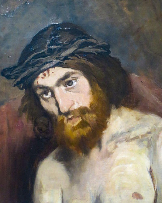 Jesus Mocked by the Soldiers White Modern Wood Framed Art Print with Double Matting by Manet, Edouard