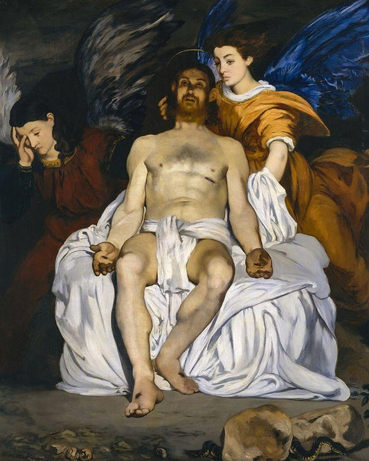 The Dead Christ with Angels White Modern Wood Framed Art Print with Double Matting by Manet, Edouard