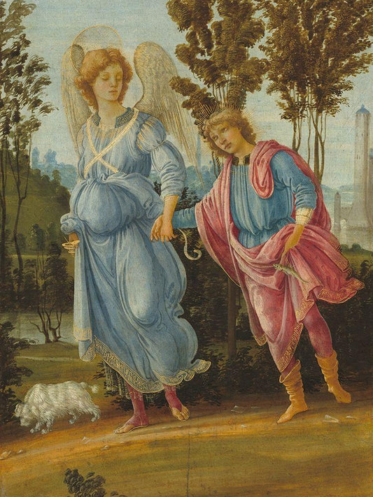 Tobias and the Angel White Modern Wood Framed Art Print with Double Matting by Lippi, Filippino