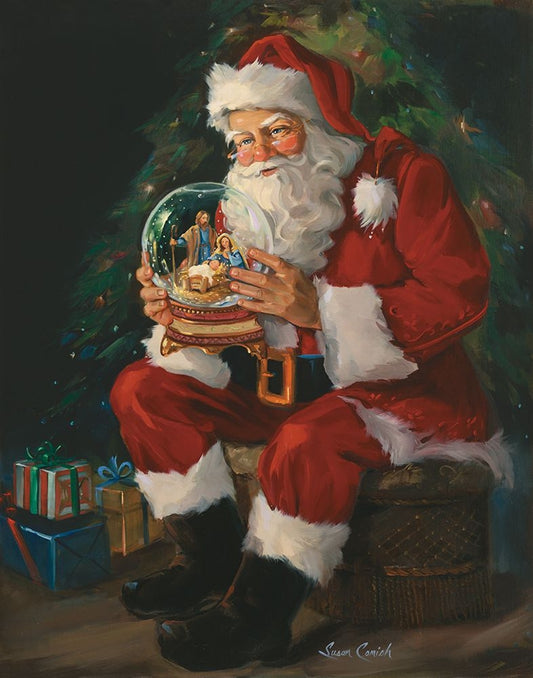 Santa Snow Globe Recolored White Modern Wood Framed Art Print with Double Matting by Comish, Susan