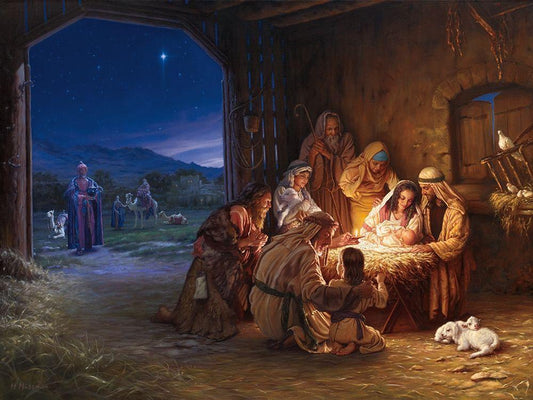 Birth Of Christ White Modern Wood Framed Art Print with Double Matting by Comish, Susan