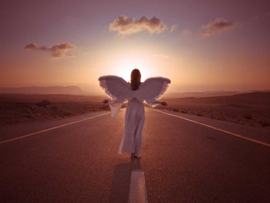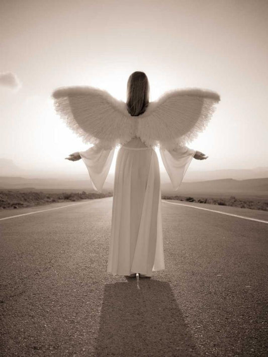 FTBR 1702 Road Angel White Modern Wood Framed Art Print with Double Matting by Frank, Assaf