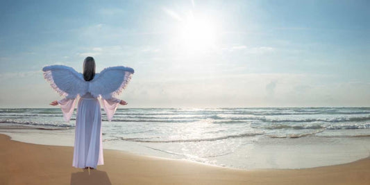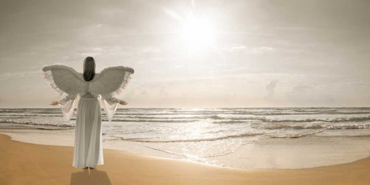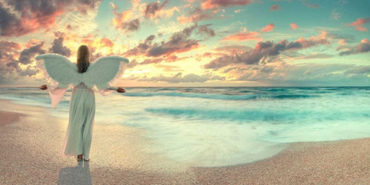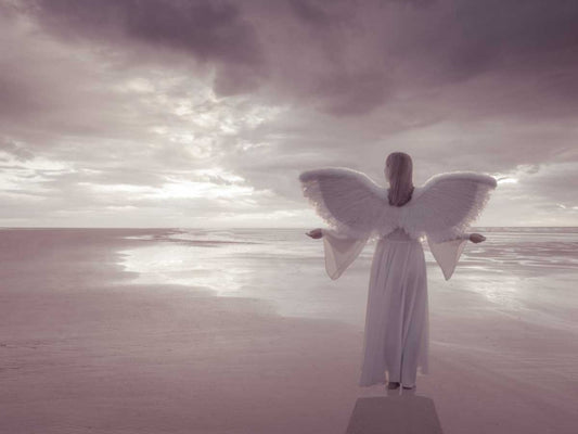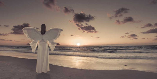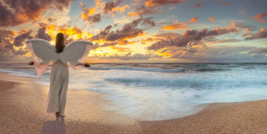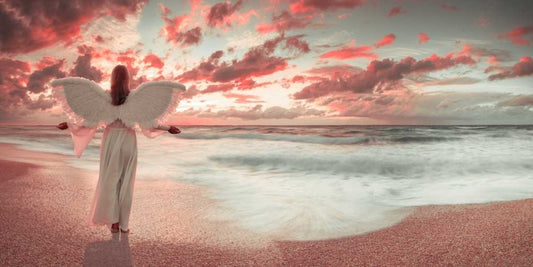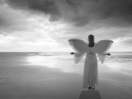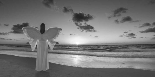 Angel on the beach at sunset White Modern Wood Framed Art Print with Double Matting by Frank, Assaf