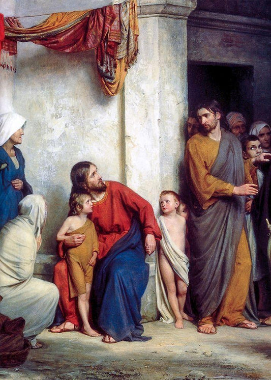 Suffer the Children White Modern Wood Framed Art Print with Double Matting by Bloch, Carl