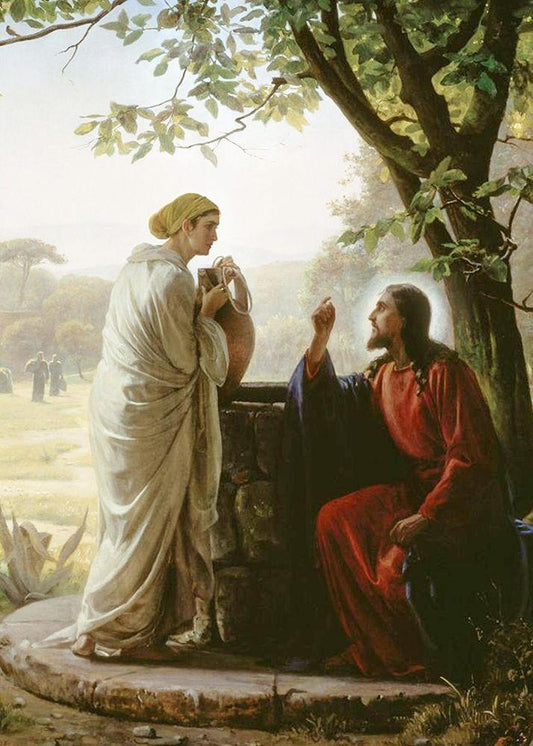 Woman at the Well White Modern Wood Framed Art Print with Double Matting by Bloch, Carl