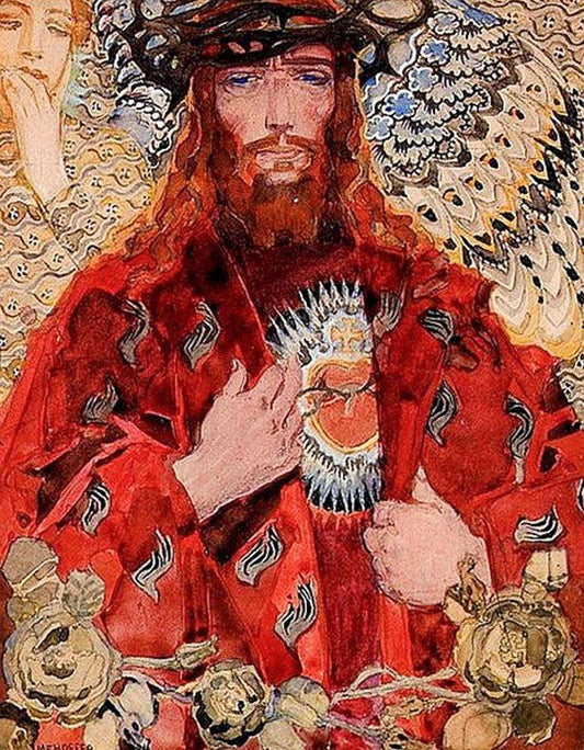 The Sacred Heart of Jesus White Modern Wood Framed Art Print with Double Matting by Józef Mehoffer