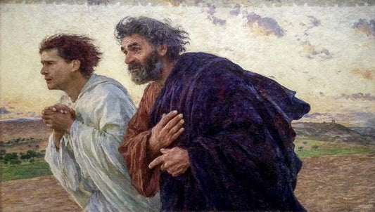 Disciples Peter and John Rushing To The Sepulcherthe Morning of The Resurrection White Modern Wood Framed Art Print with Double Matting by Burnand, Eugene