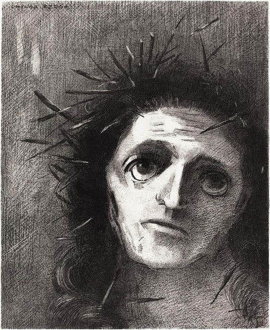 And the Face of Christ Shone in the Disk of the Sun White Modern Wood Framed Art Print with Double Matting by Redon, Odilon