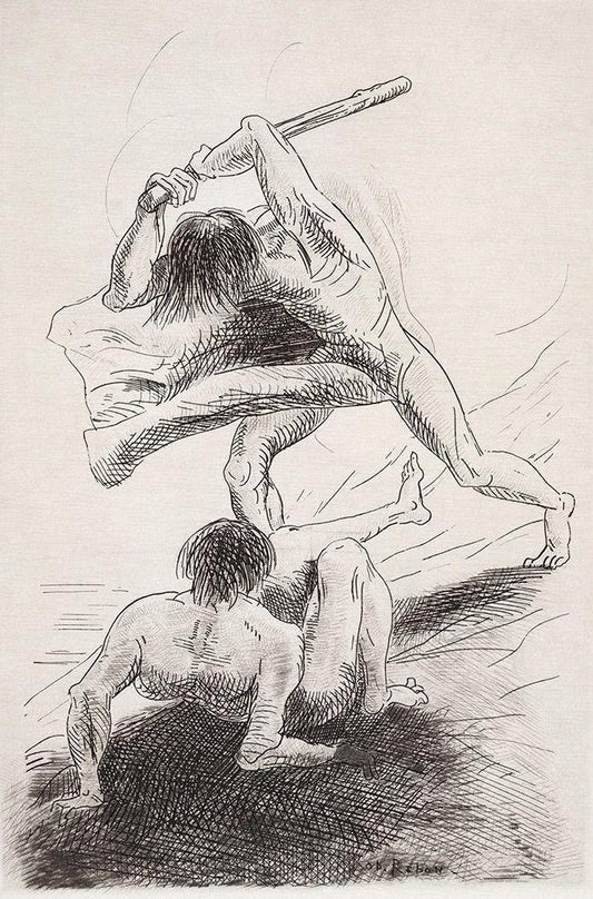 Cain and Abel White Modern Wood Framed Art Print with Double Matting by Redon, Odilon