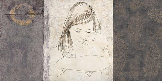 Maternite II (neutral) White Modern Wood Framed Art Print with Double Matting by Roux, Simon