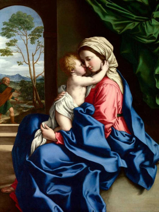 The Virgin and Child embracing White Modern Wood Framed Art Print with Double Matting by Sassoferrato