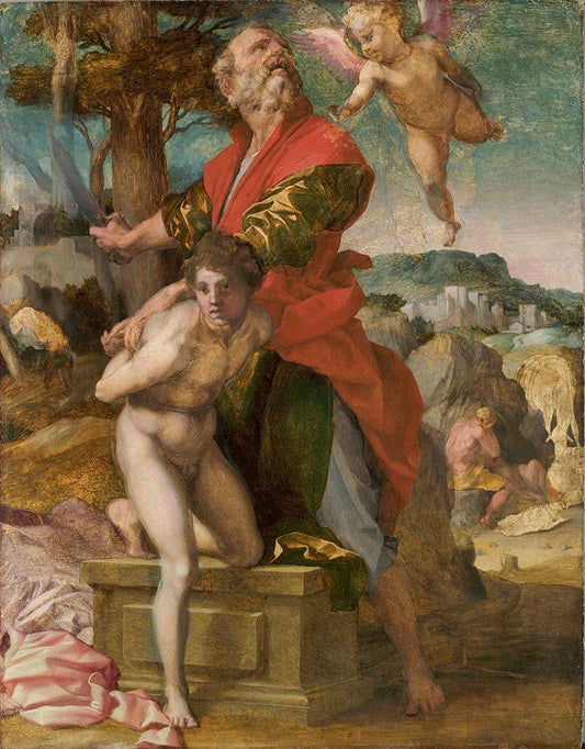 The Sacrifice of Isaac White Modern Wood Framed Art Print with Double Matting by Sarto, Andrea del