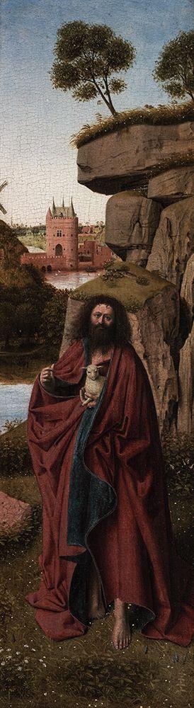 Saint John the Baptist in a Landscape White Modern Wood Framed Art Print with Double Matting by Christus, Petrus