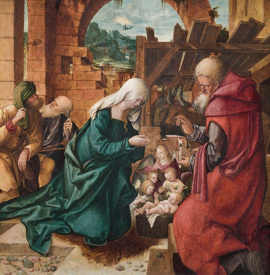 Adoration of the Shepherds White Modern Wood Framed Art Print with Double Matting by Schaufelein, Hans Leonhard