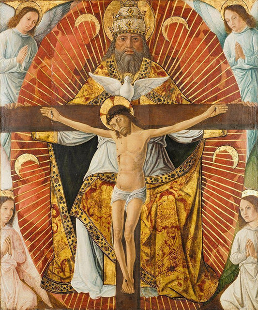 The Coronation of the Virgin with the Trinity White Modern Wood Framed Art Print with Double Matting by de Mora, Rubielos