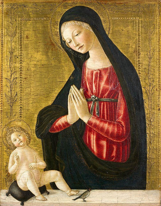 Virgin and Child with a Goldfinch White Modern Wood Framed Art Print with Double Matting by Landi, Neroccio de''