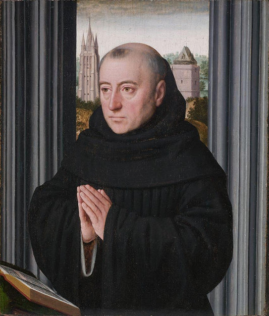 Portrait of a Monk White Modern Wood Framed Art Print with Double Matting by David, circle of Gerard