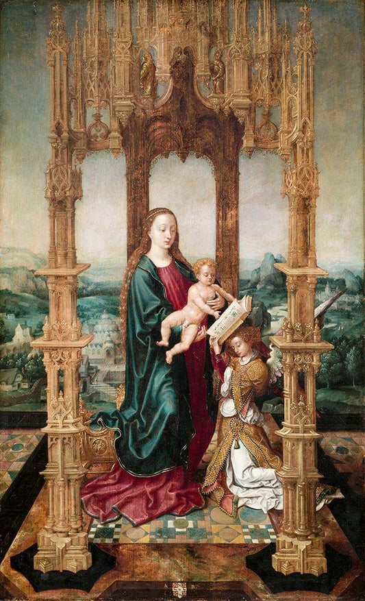 Virgin and Child under a Canopy White Modern Wood Framed Art Print with Double Matting by Netherlands 16th Century