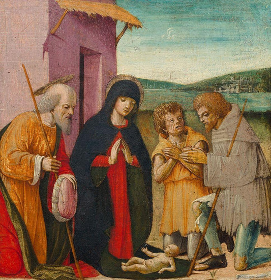 Adoration of the Shepherds White Modern Wood Framed Art Print with Double Matting by Italy 15th Century