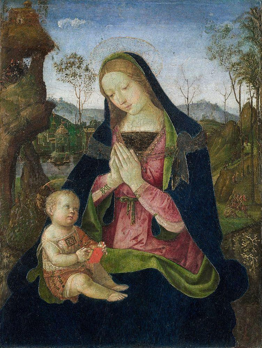 Virgin and Child White Modern Wood Framed Art Print with Double Matting by Pintoricchio