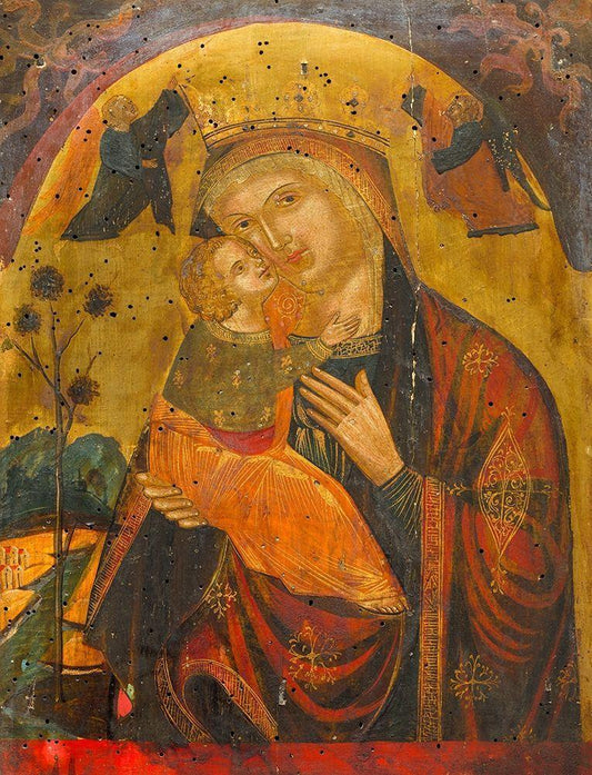 Virgin and Child White Modern Wood Framed Art Print with Double Matting by Byzantine 15th Century