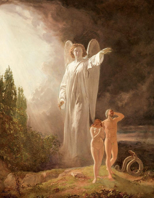 Expulsion of Adam and Eve White Modern Wood Framed Art Print with Double Matting by Faed, John