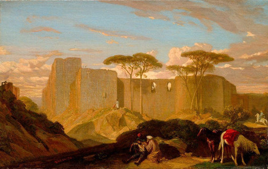 Ruined Church White Modern Wood Framed Art Print with Double Matting by Dauzats, Adrien