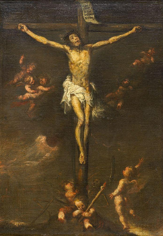 Crucifixion White Modern Wood Framed Art Print with Double Matting by Spain 19th Century