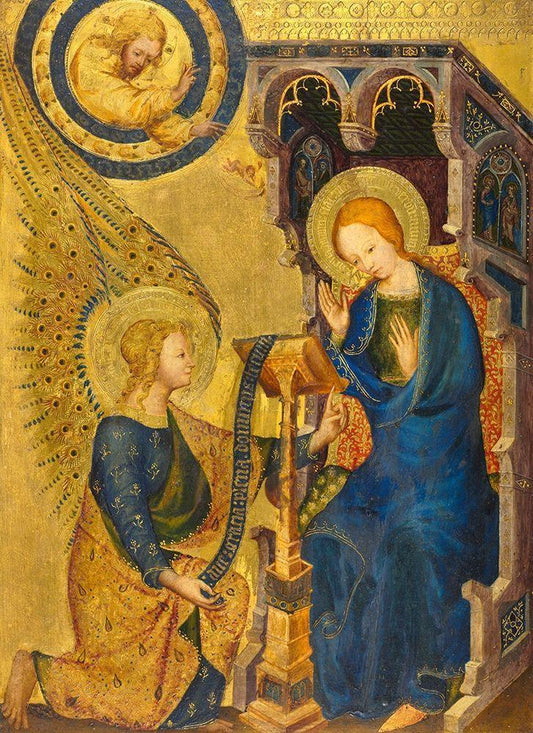 The Annunciation White Modern Wood Framed Art Print with Double Matting by France 14th Century