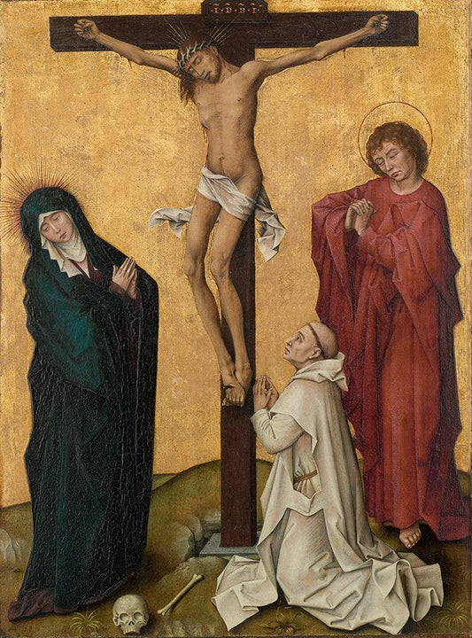 The Crucifixion with a Carthusian Monk White Modern Wood Framed Art Print with Double Matting by van der Weyden, Roger