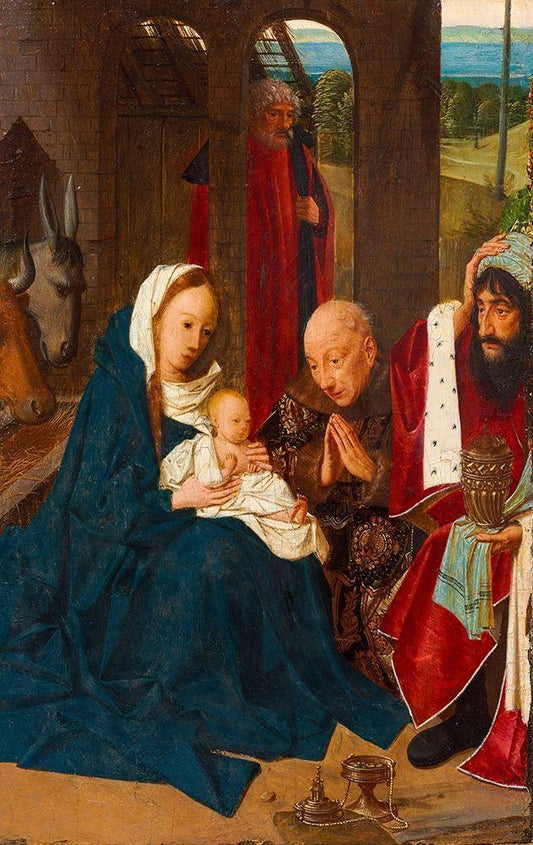 The Adoration of the Magi White Modern Wood Framed Art Print with Double Matting by Jans, Geertgen tot Sint