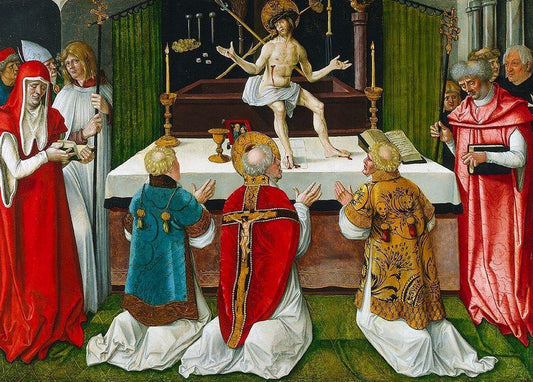 The Mass of Saint Gregory White Modern Wood Framed Art Print with Double Matting by Baldung, Hans